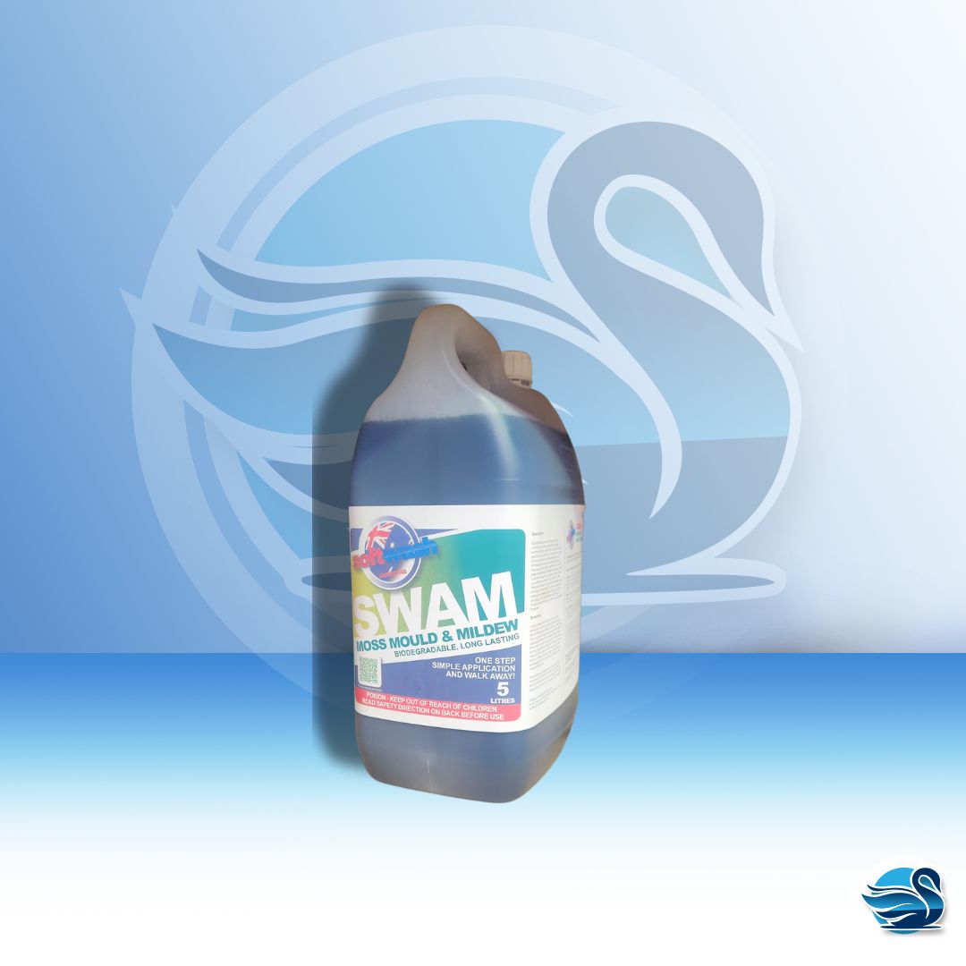 SWAM Moss and Mildew has a unique combination of biodegradable selective surfactants for moss removal, mould removal and other soil removal on any exterior surface. When diluted with water and applied, it immediately attacks that unsightly moss, mould, soil and grime. Each time it rains, this safe, cleansing combination reactivates to help flush the moss, mould, soil and grime without scouring the surface it has infested. SWAM Moss and Mildew is a biocidal eliminator spray and gone formulation. A highly concentrated detergent sanitiser for one step cleaning and sanitising of surfaces affected by mould or mildew Ideal for clean up after natural disasters, flood etc.